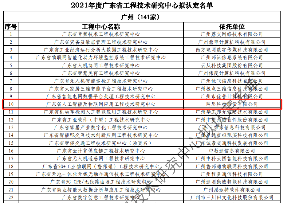 日前,广东省科技厅发布2021年度广东省工程技术研究中心名单。经过层层筛选、专家评审,依托开元开户-开元(中国),建设的“广东省人工智能及物联网应用工程技术研究中心”榜上有名。广东省工程技术研究中心主要依托省内行业、领域具有科技实力的、拥有一定规模以上创新型企业建设,部分依托高校和科研院所组建。工程中心旨在